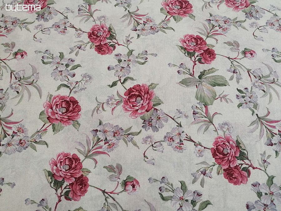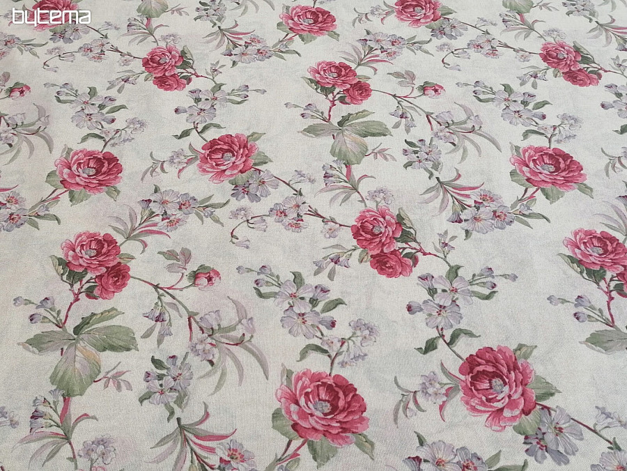 Decorative fabric Amara with a rose motif is suitable for many uses.
