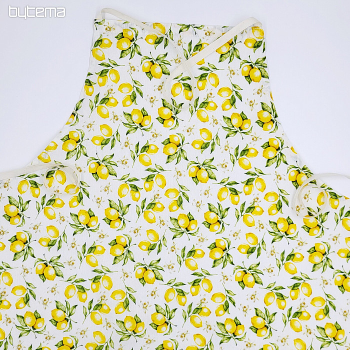 A beautiful and practical apron with a motif of deep yellow lemons will beautify every chef or cook.