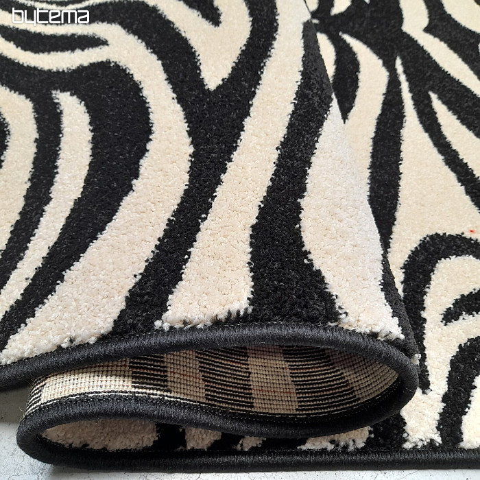 A piece of carpet with an interesting black and white pattern.