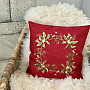 The embroidered pattern with Christmas mistletoe on a red background will be a beautiful addition to your home.