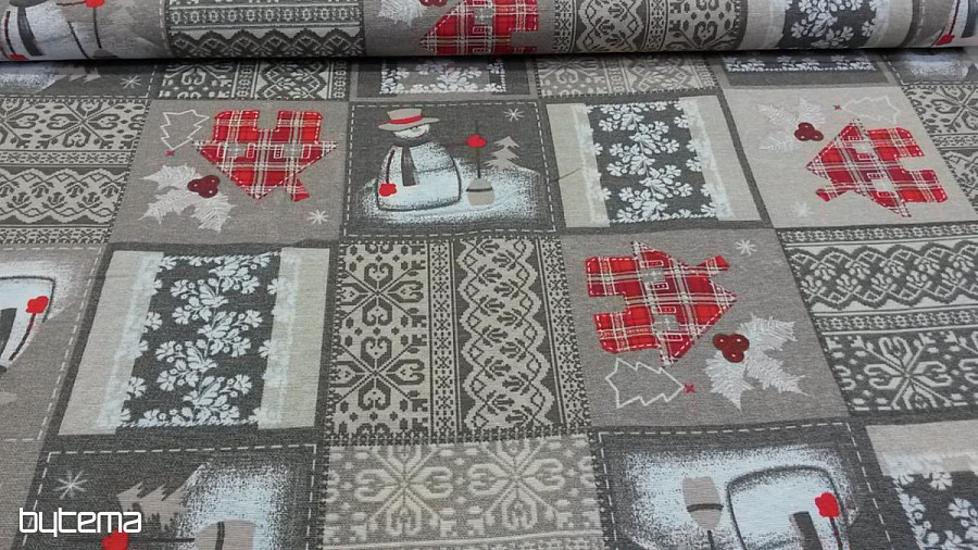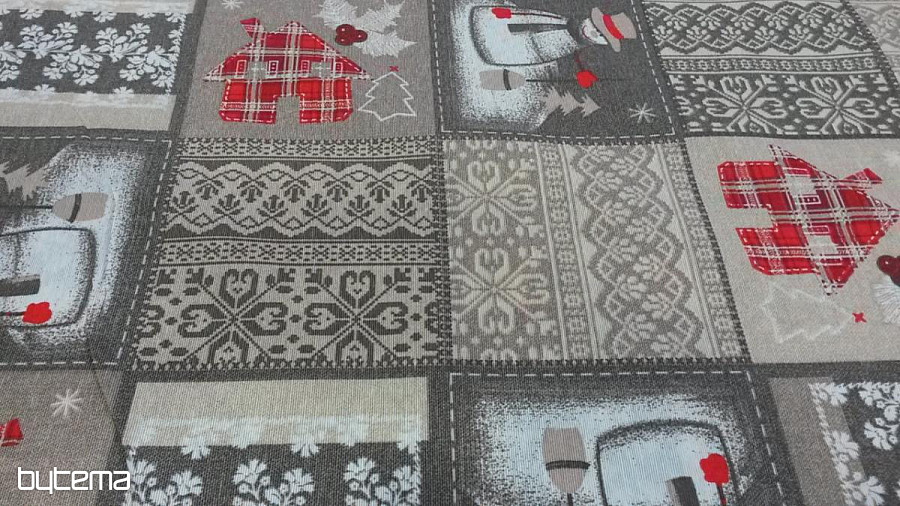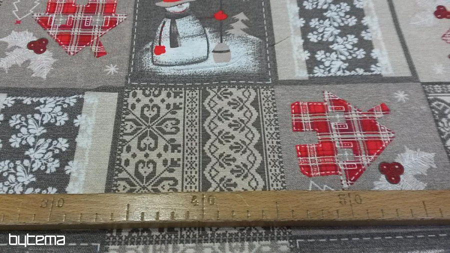 Christmas decorative fabric with heart in three colors, beautiful fabrics for interiors in rustic and rural style.