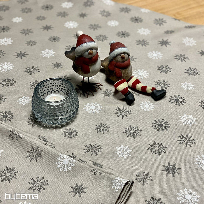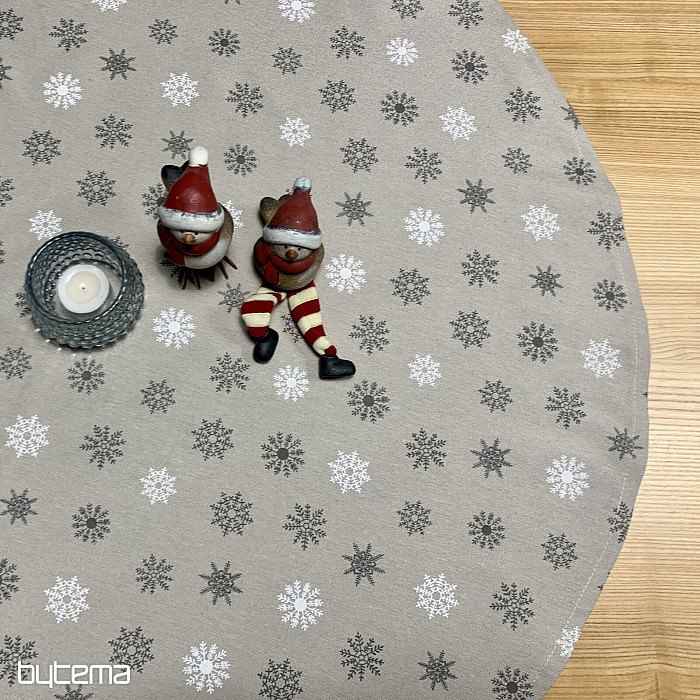 Christmas decorative tablecloths and scarves with a design of beautiful large and small white and gray snowflakes on a red background will be a magical decoration in your home.