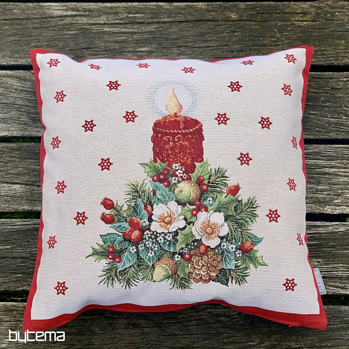 A Christmas tapestry pillowcase with a beautiful burning candle will bring the holiday warmth to your home.