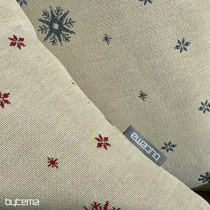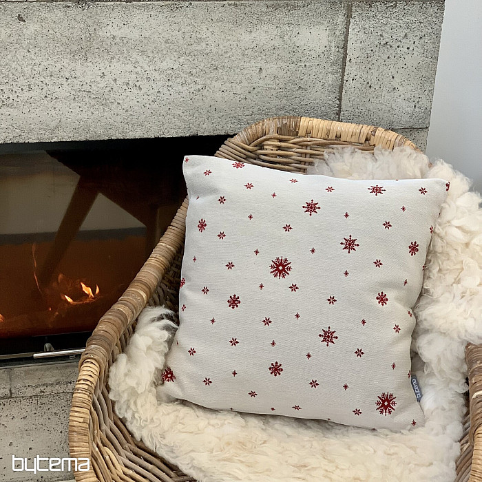 A tapestry cover with a design of delicate red snowflakes will bring true Christmas magic to your home.