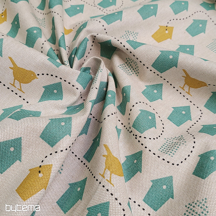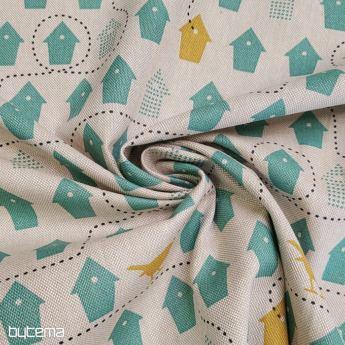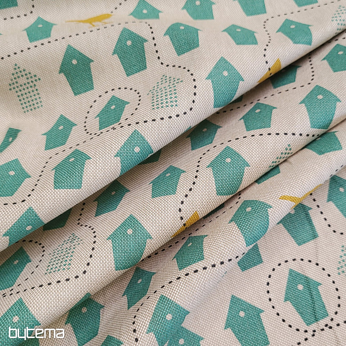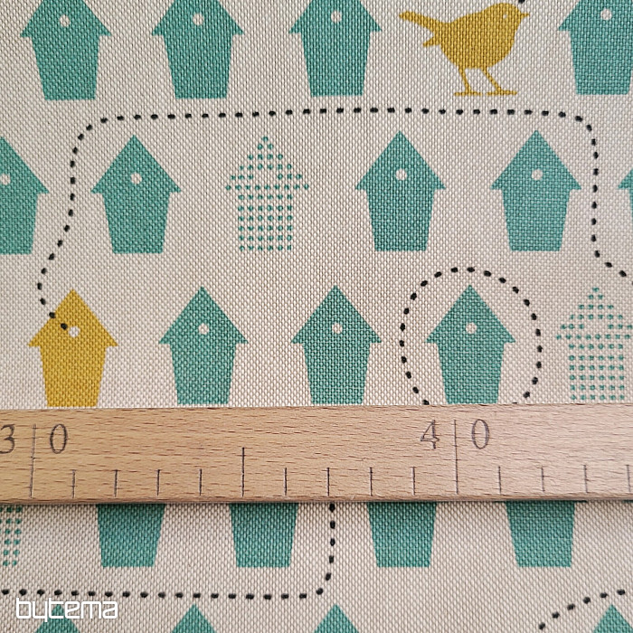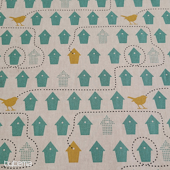 A cotton fabric full of birdhouses, just the one to choose from.