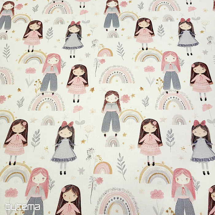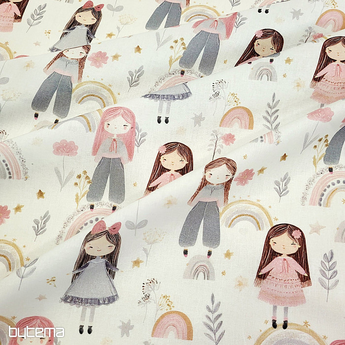 Cotton fabric with figures of beautiful little girls.