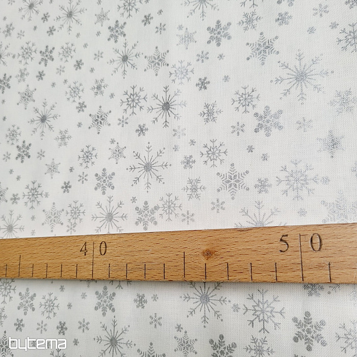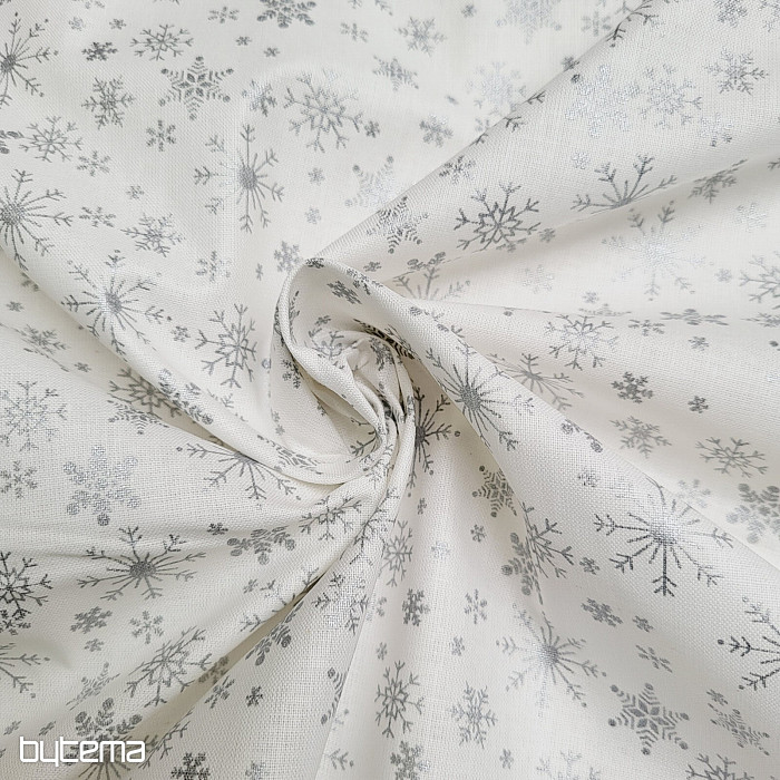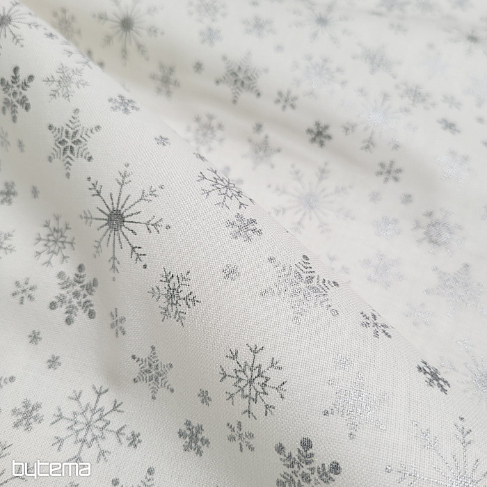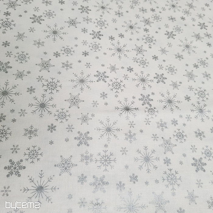 Beautiful Christmas decorative fabric made of 100% cotton. Beautiful large snowflakes of various designs in silver color are perfect for your Christmas table and dresser.