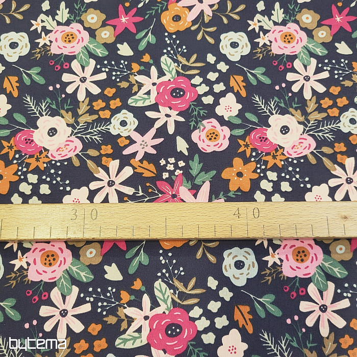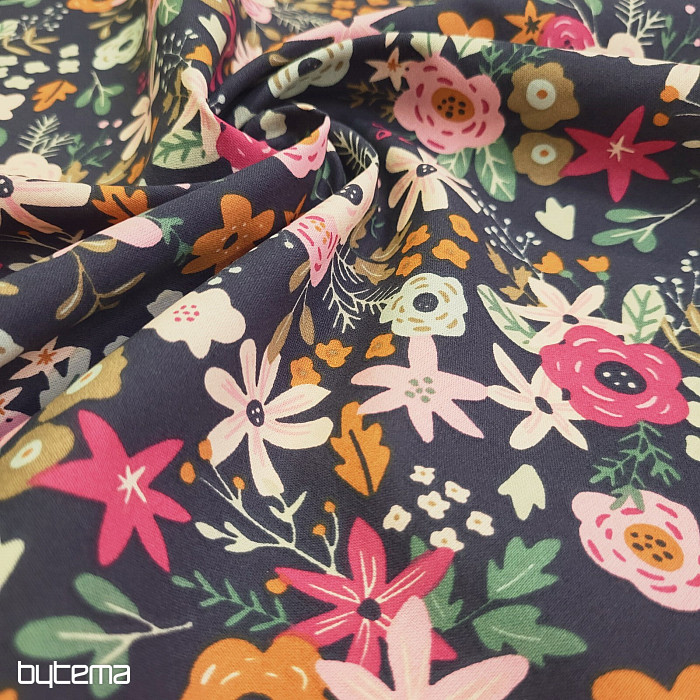 Cotton fabric full of blooming flowers.