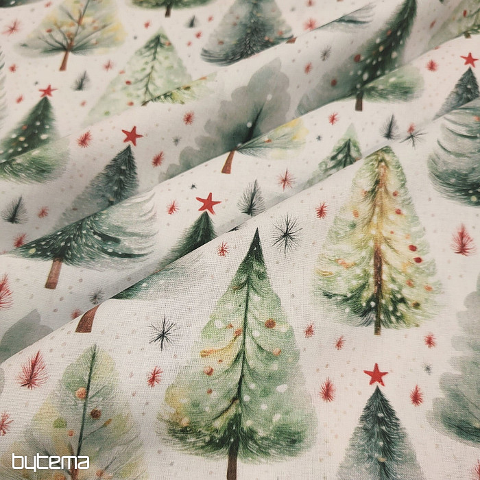 Christmas cotton fabric with a digital print of trees that radiates the Christmas atmosphere.