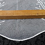 Embroidered short curtains on white background.