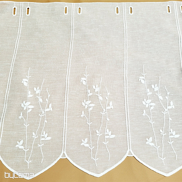 A stained glass curtain with a delicate modern pattern of stems and leaves in a soft cream shade from the German manufacturer GERSTER is a permanent guarantee of quality.