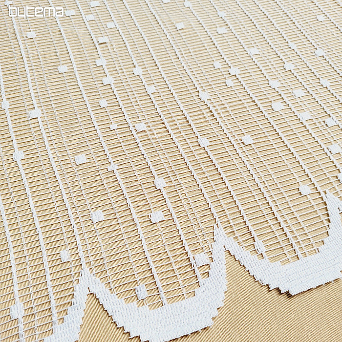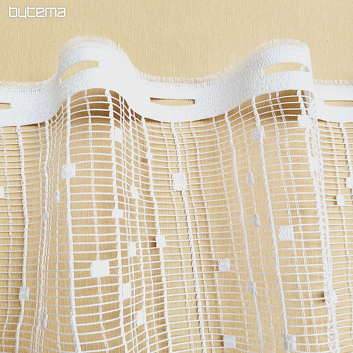 Modern stained glass, jacquard curtain finished with a border and fine squares across the entire surface.