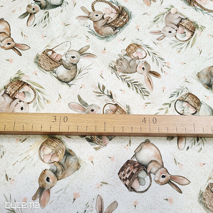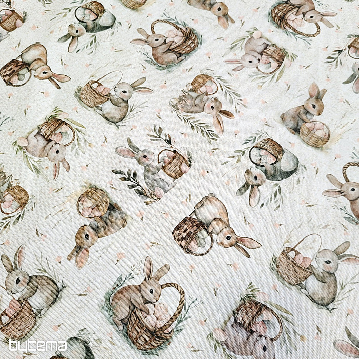 Easter decorative fabric of bunnies and eggs. A beautiful and cute decoration for spring moments in your home.