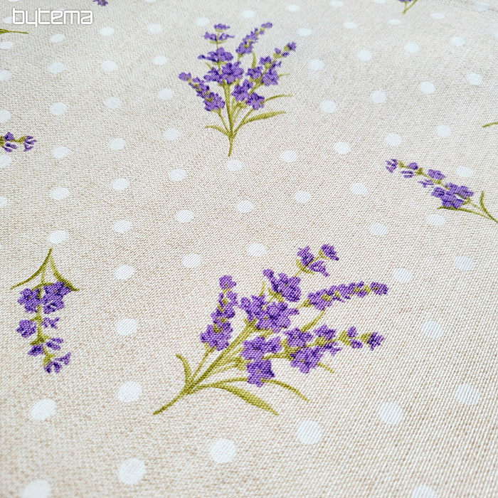 Decorative fabric with sprigs of lavender on a dotted background is a popular design. The fabric is suitable for curtains, tablecloths, covers and so on...