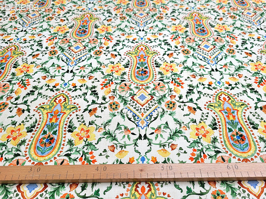 Cotton, decorative fabric full of colors with a folk motif will be a decoration for every terrace or cottage.