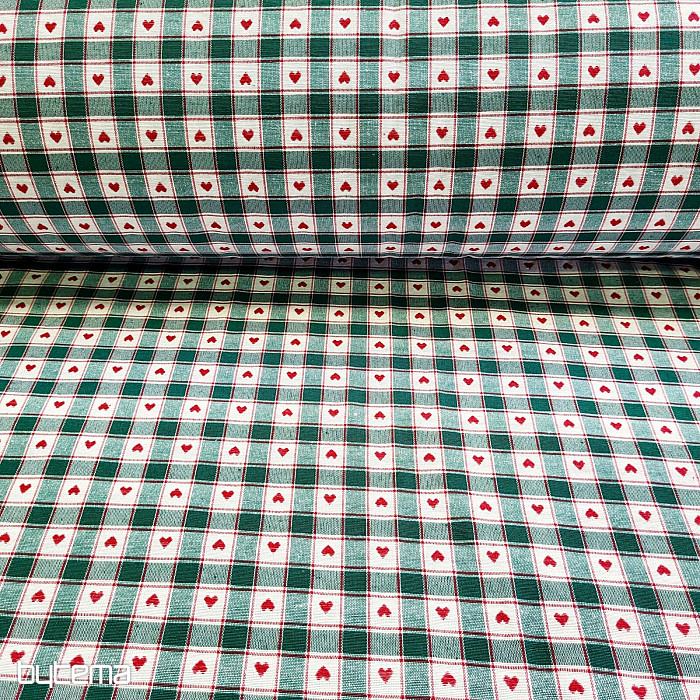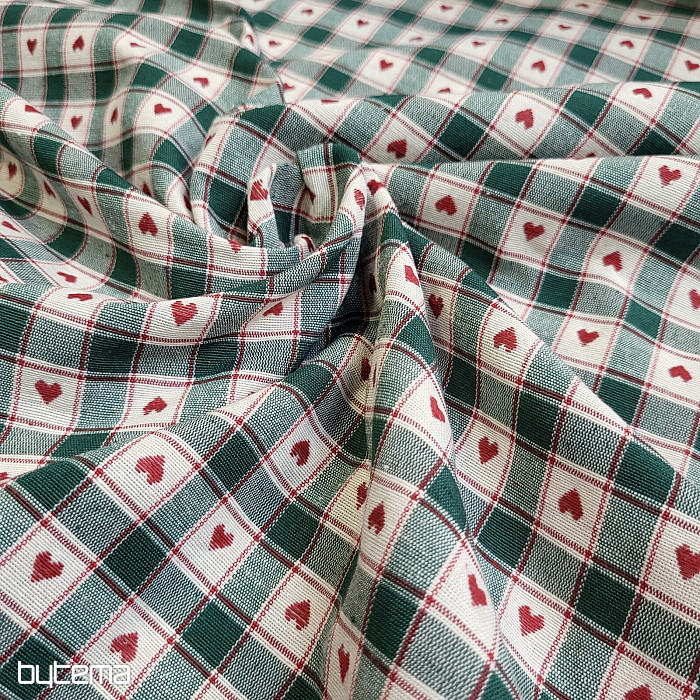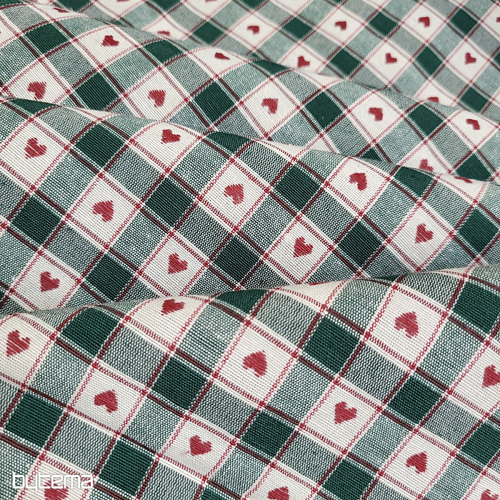 Decorative fabric in a checkerboard and heart design is perfect for country cottages and log cabins.