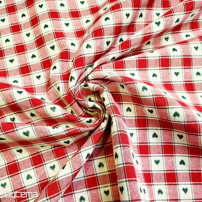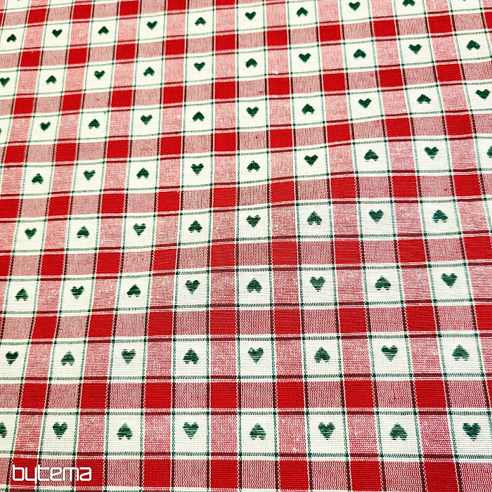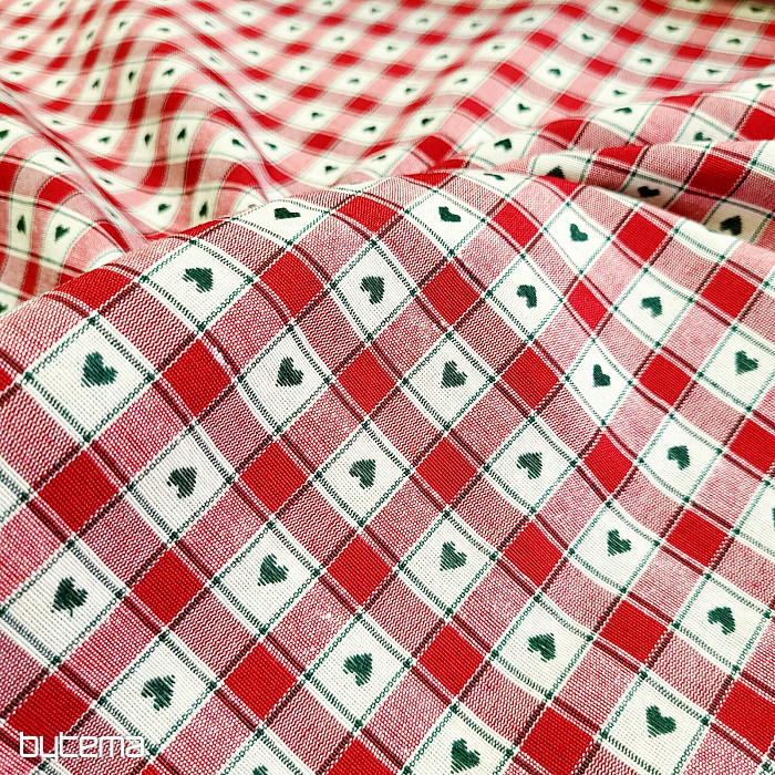 Decorative fabric in a checkerboard and heart design is perfect for country cottages and log cabins.