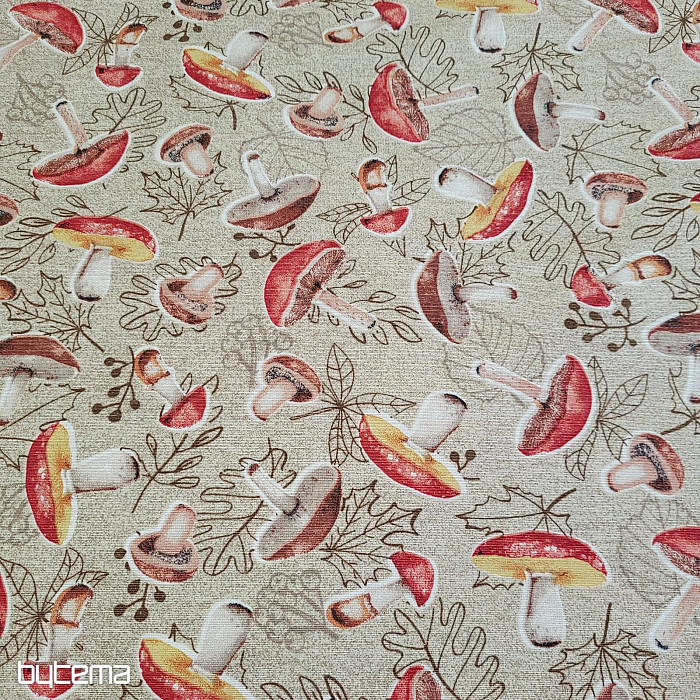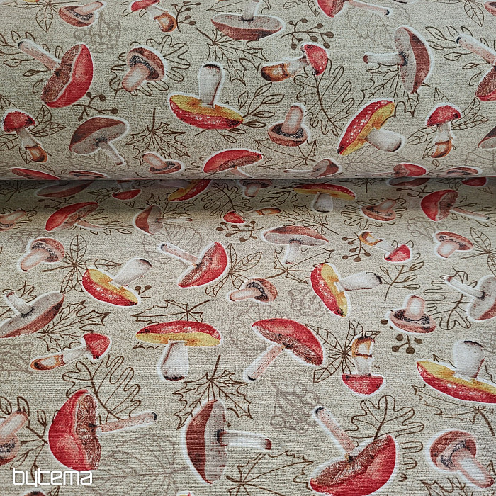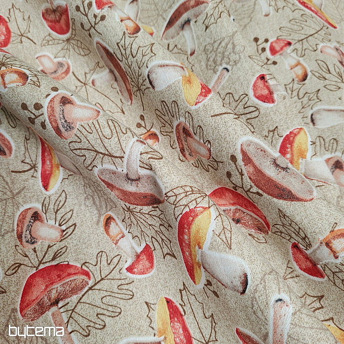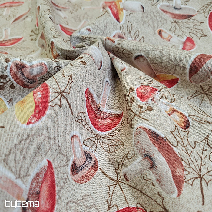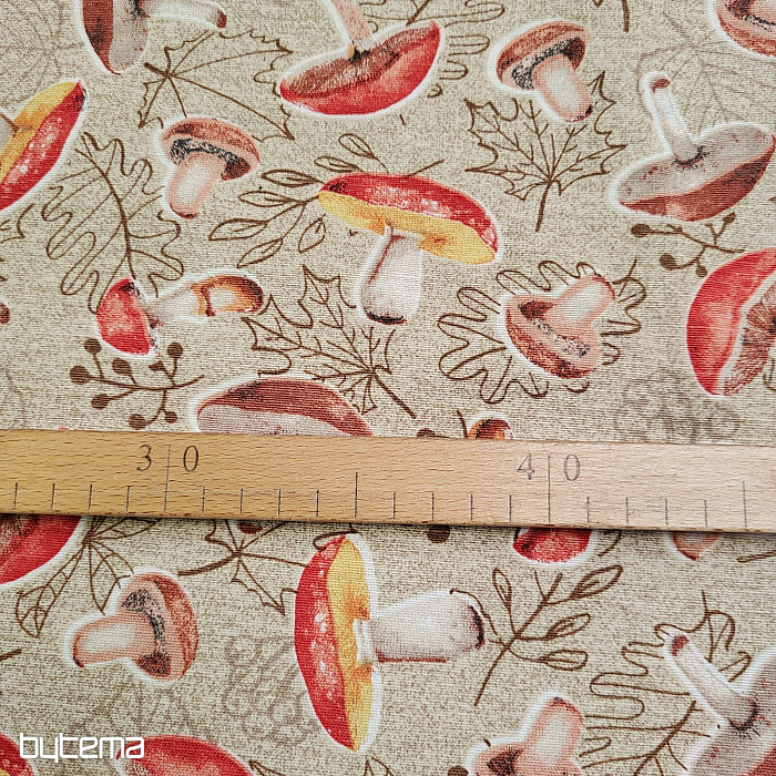 Autumn decorative fabric full of beautiful mushrooms will delight the eye of every cottager and homeowner.