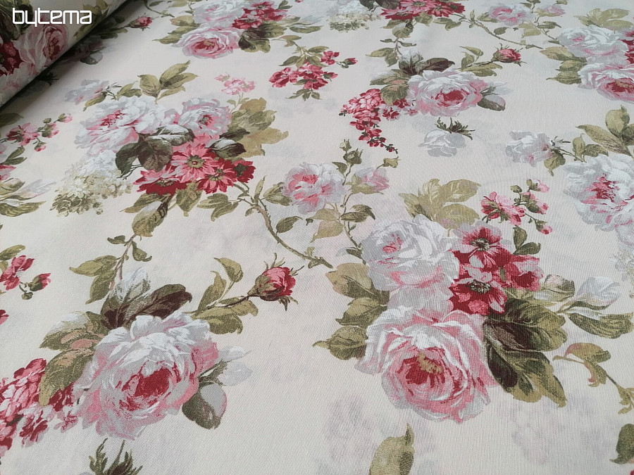 Decorative fabric ELIANA with a rose motif is suitable for many uses. Curtains , a tablecloth or a pillow made of this fabric can be a pleasant decoration of every living room, bedroom, kitchen, dining room, terrace, winter garden . We tailor everything according to the customer's wishes and requirements, try our calculators.