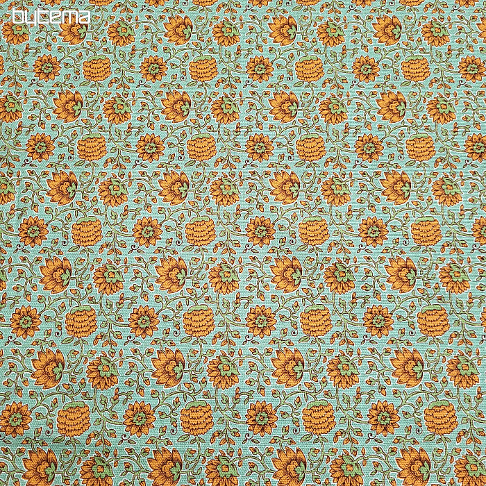 Beautiful orange flowers on a turquoise background densely stacked on top of each other, but at the same time they have a very soft and relaxing effect.