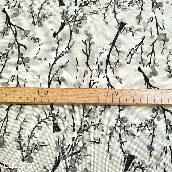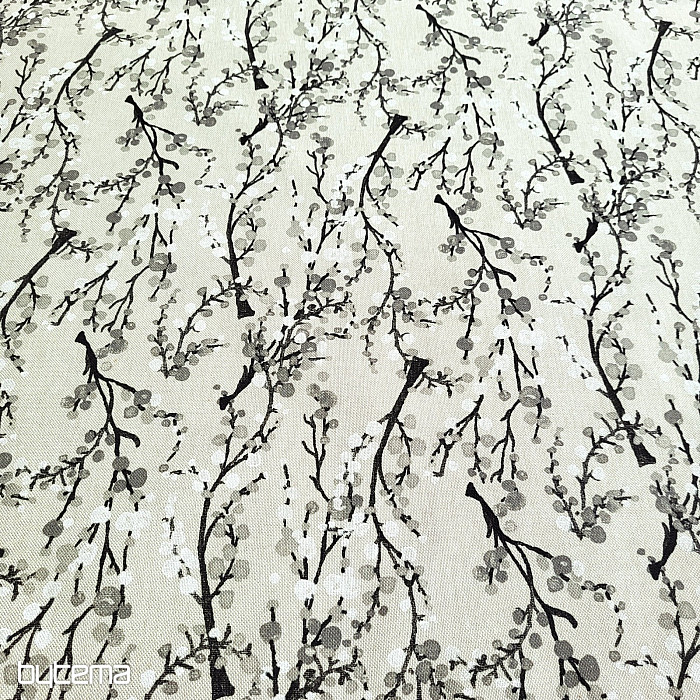 Decorative fabric with a twig pattern.