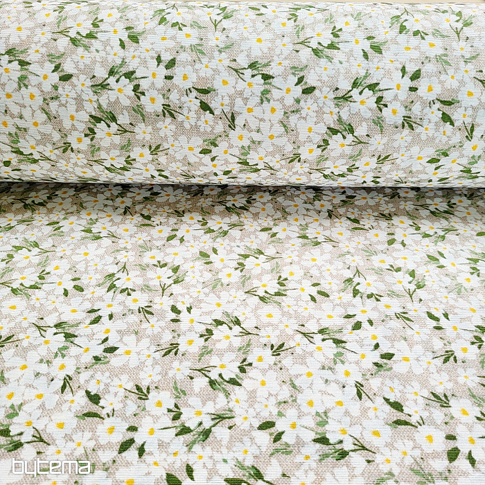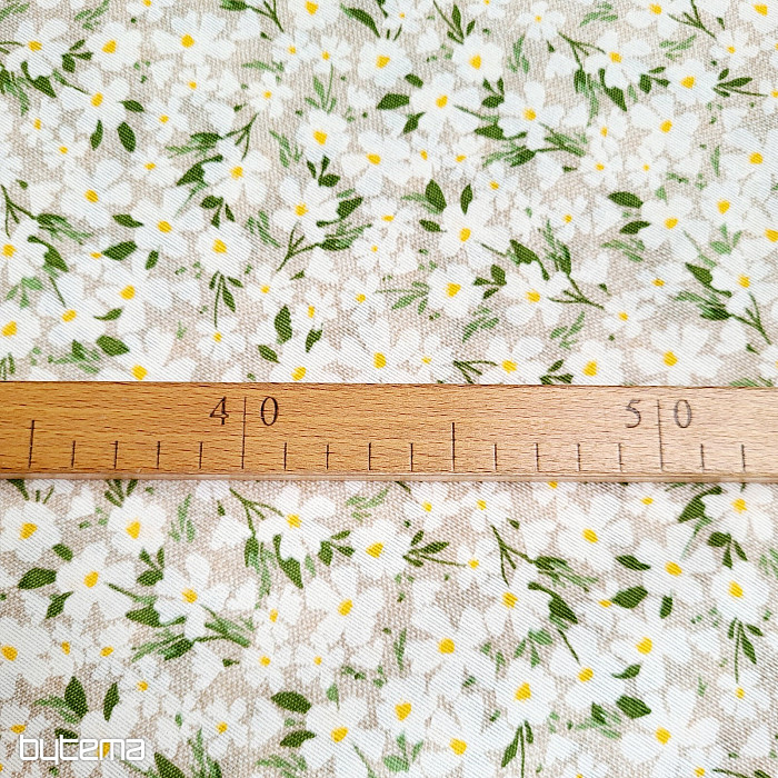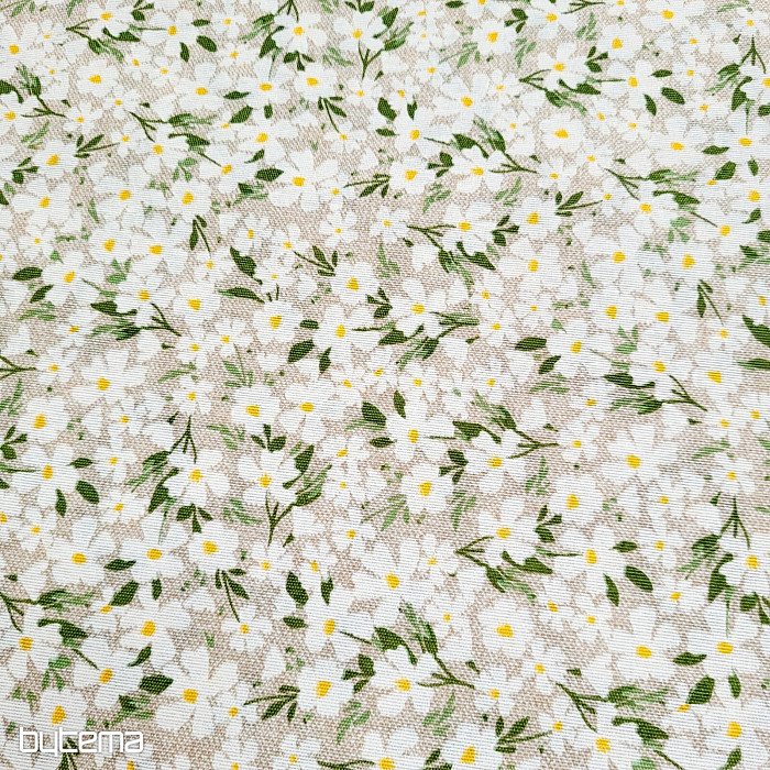 Decorative fabric with delicate white flowers shines like daisies.