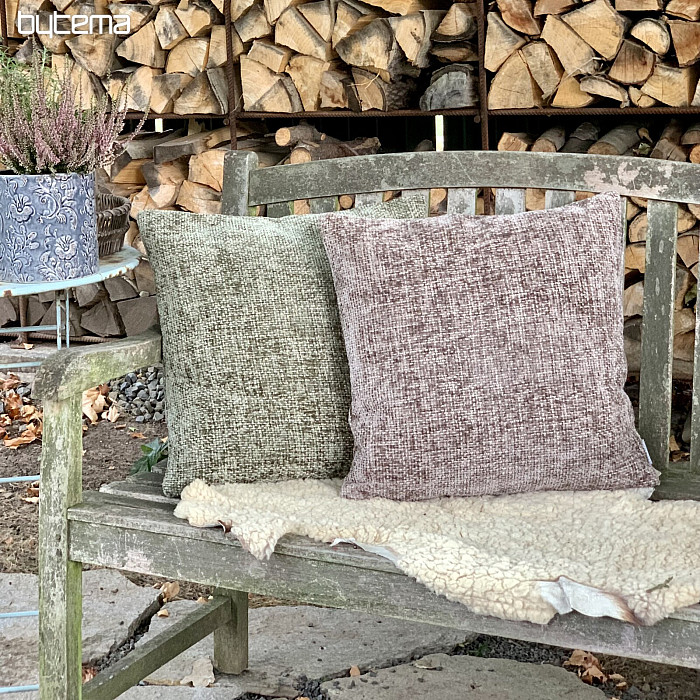 A very nice decorative cushion with a coarser appearance that is easy to maintain. Soft to the touch, feels like chenille.