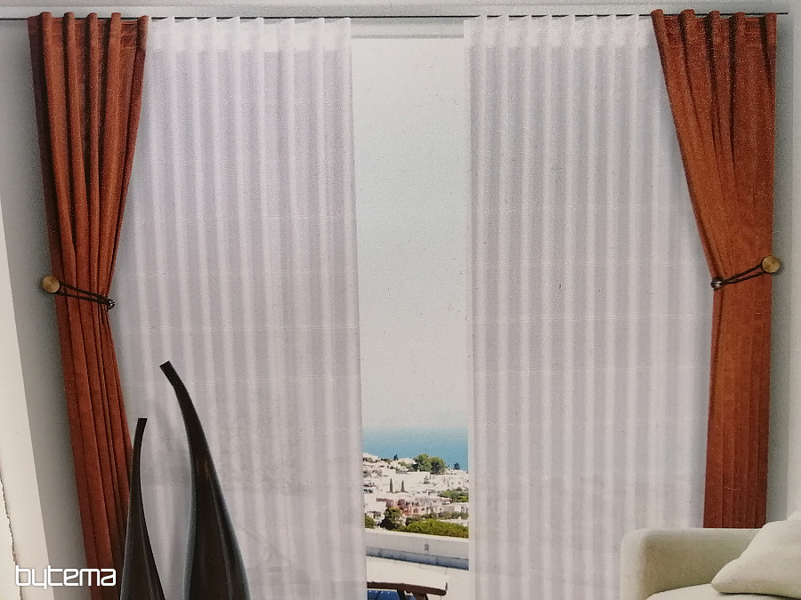 Bestsellers type of shirring tape on curtains or drapes. Regularly in the warehouses, very simple, we recommend to quilt for 4 times. On the back side of the tape there are small loops for the hooks on the rings, or the rider to the rails.