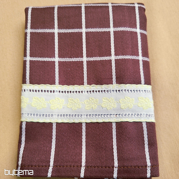 Soft cotton tea towels with a check pattern and yellow trim with yellow leaves. A beautiful and delicate decoration for your kitchen.