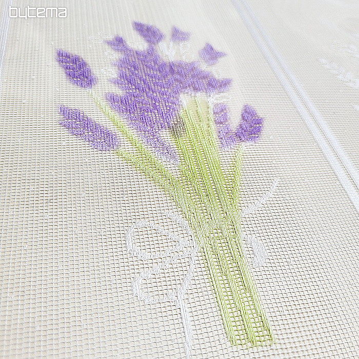 A beautiful jacquard curtain for a stained glass window with a LAVENDER motif with a two-tone pattern.