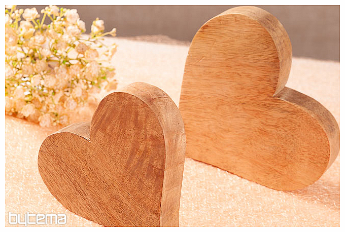 The beautiful heart is made of mango wood. This exotic wood stands out with its structure and warm shades of color.