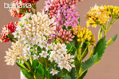 There are 14 leaves and three large flowers on a 47 cm long stem. The leaves have a matte surface, you have to touch them to see if they are a live flower or not, that is how true their appearance is.