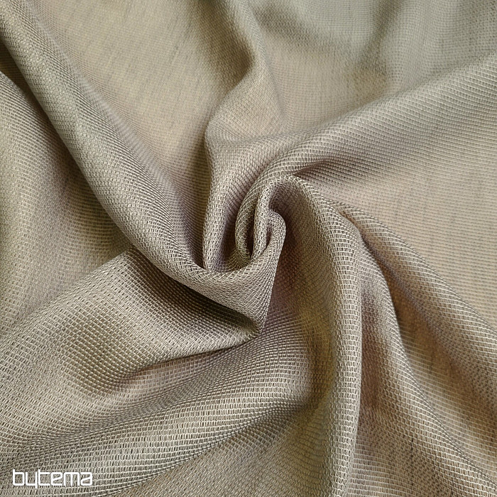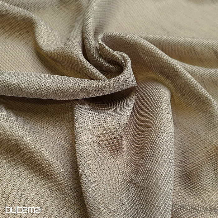 The curtain is soft to the touch, but densely woven with a dark beige thread that creates small squares.