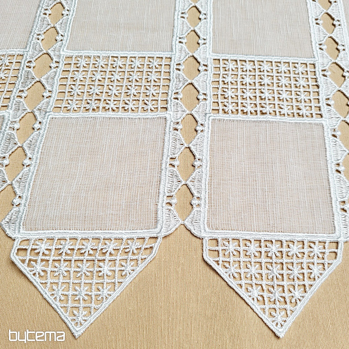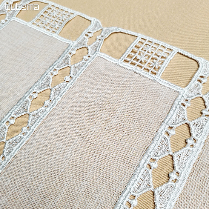Beautiful, luxurious, modern, embroidered, cream-colored stained glass curtain with stars. The curtain is cut in whole pieces. We offer three possible curtain heights.