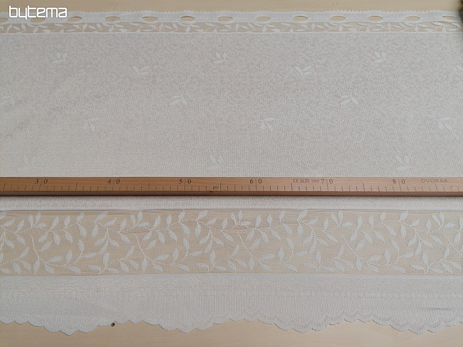 Modern jacquard curtain, densely woven with a motif of leaves and finished with a rich border.