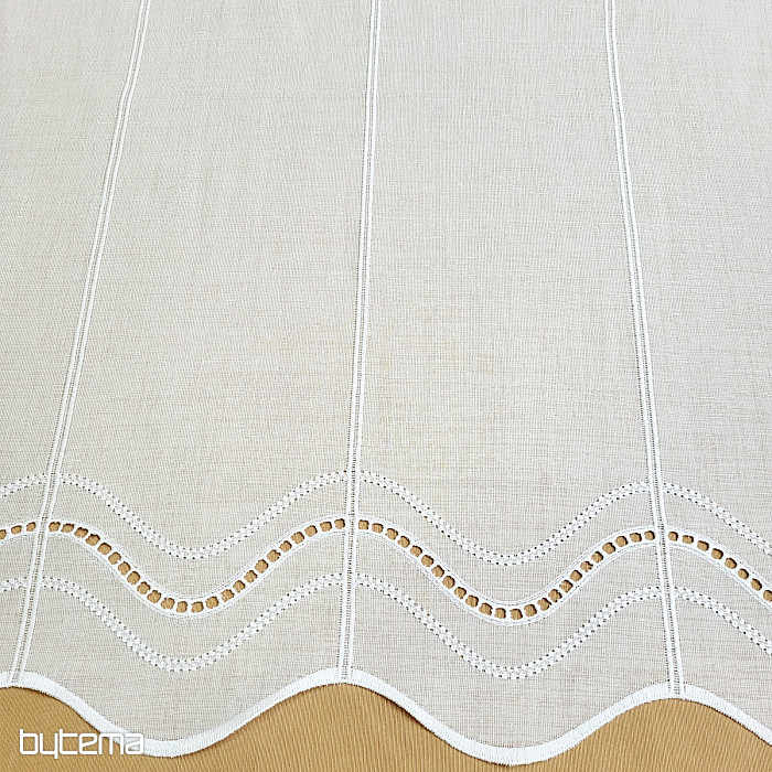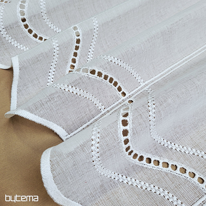 Modern simple embroidered curtain for stained glass. No need to sew, because it is cut in embroidered lines approx. 15 cm. The material has a natural to soft linen look.