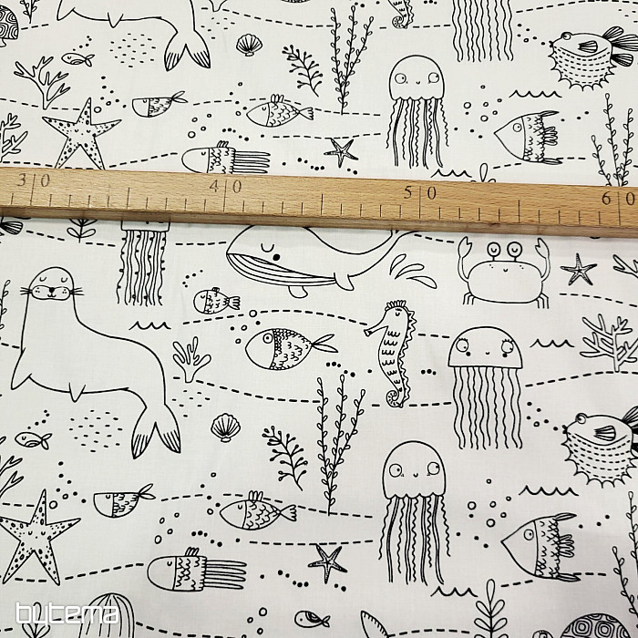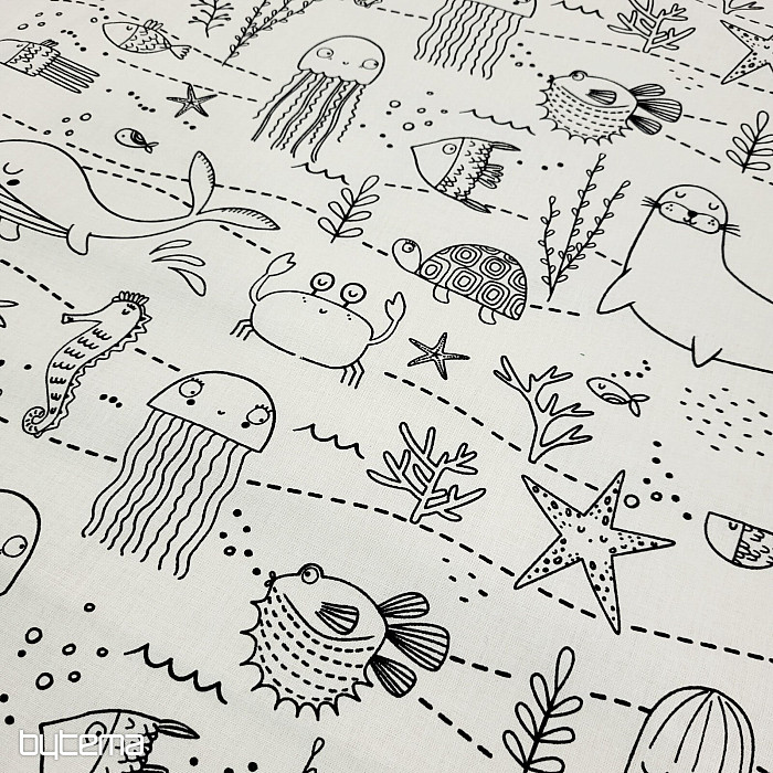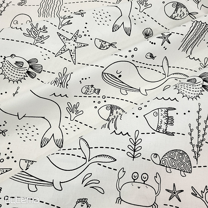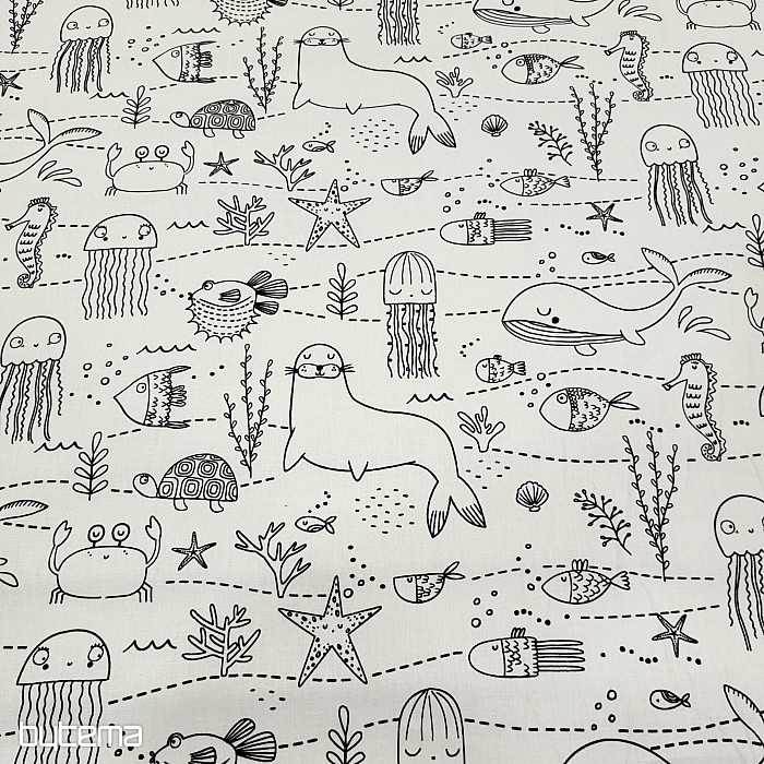 Fabric with underwater animals that children can color themselves according to their imagination.
