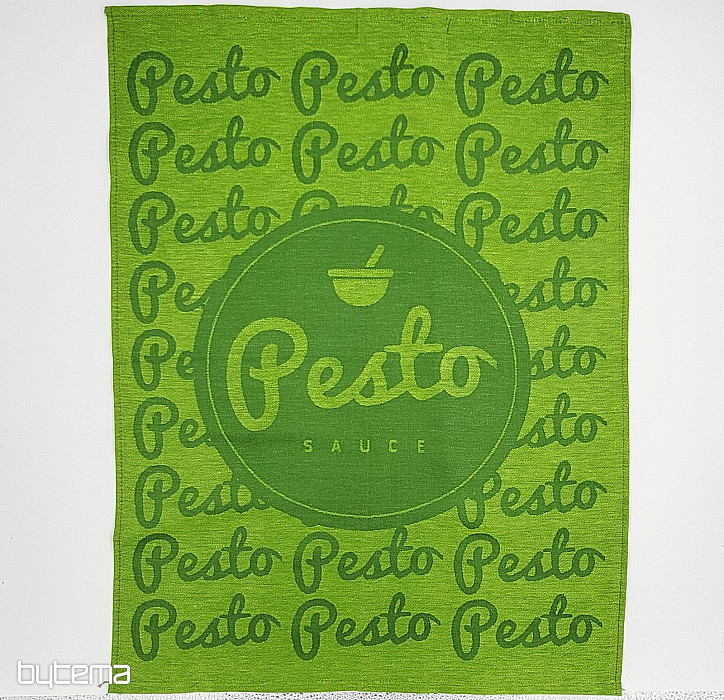 Beautiful green tea towel with the inscription PESTO. A beautiful gift for all cooks.