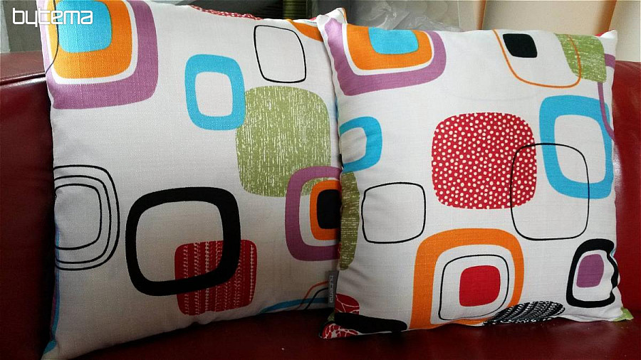 Cushion covers made of decorative fabric MUMBO. Each side has a different color design.