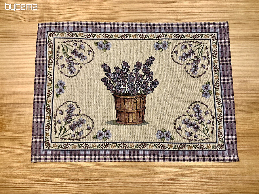 Tapestry tablecloths and placemats with LAVENDER motif.