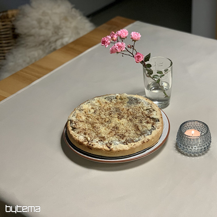 A plain and practical tablecloth with a Teflon finish that is easy to maintain and will keep your table beautiful.
