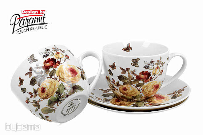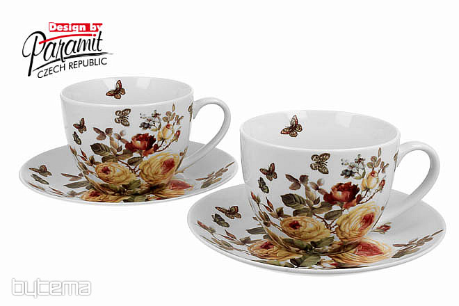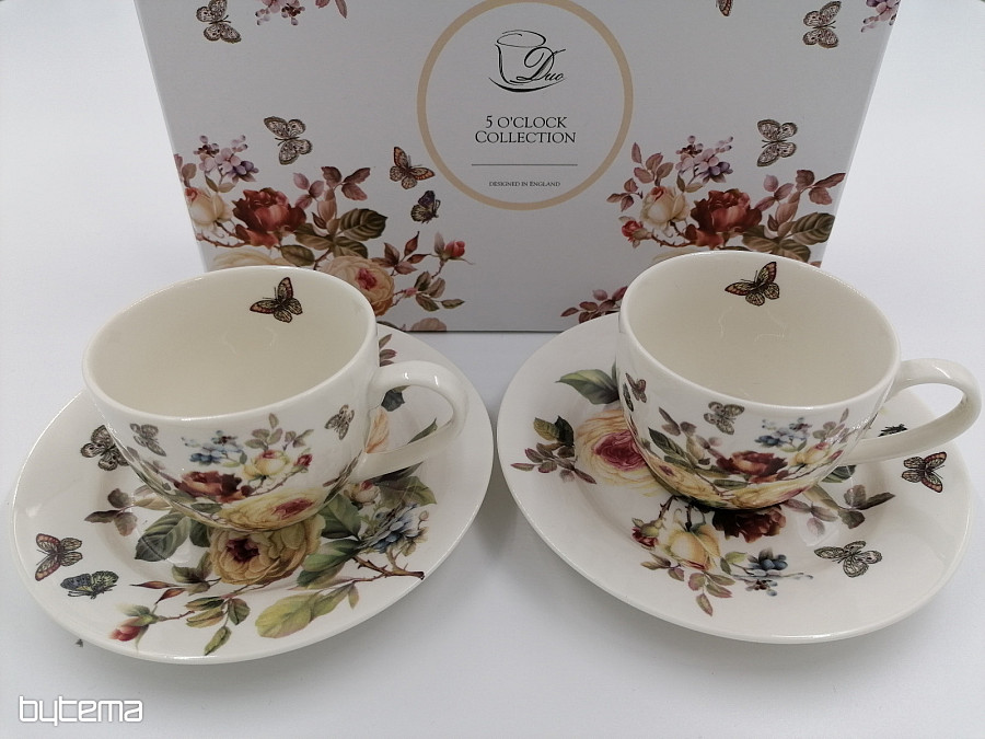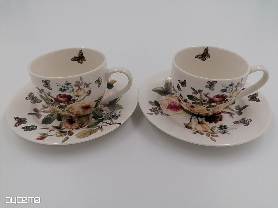 Two 95 ml espresso cups together with saucers form a beautiful pair, which is packed in a printed box, which is padded and covered with white satin.