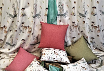 We offer a lot of decorative fabrics with children's motifs. Our customer chose the fabric Little Girl for her daughters' room, where there is a beautiful motif of a girl with animals. It is 100% cotton of a higher weight suitable for curtains. She chose Ema fabric in the forest for the pillows, which has the same motif as Holčičla, but smaller. This creates a beautiful combination. This fabric is also suitable for bedding.