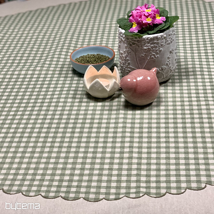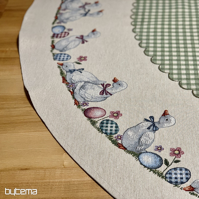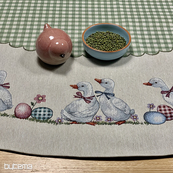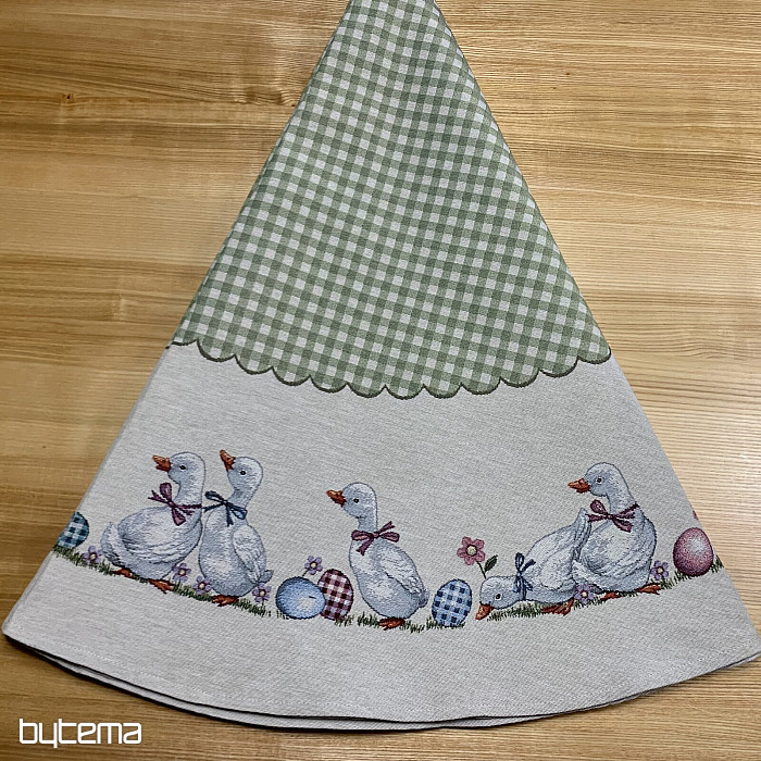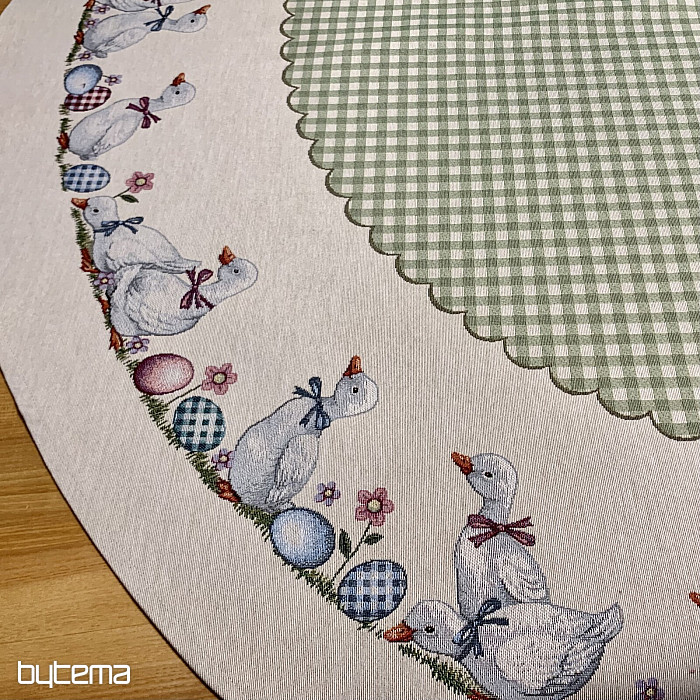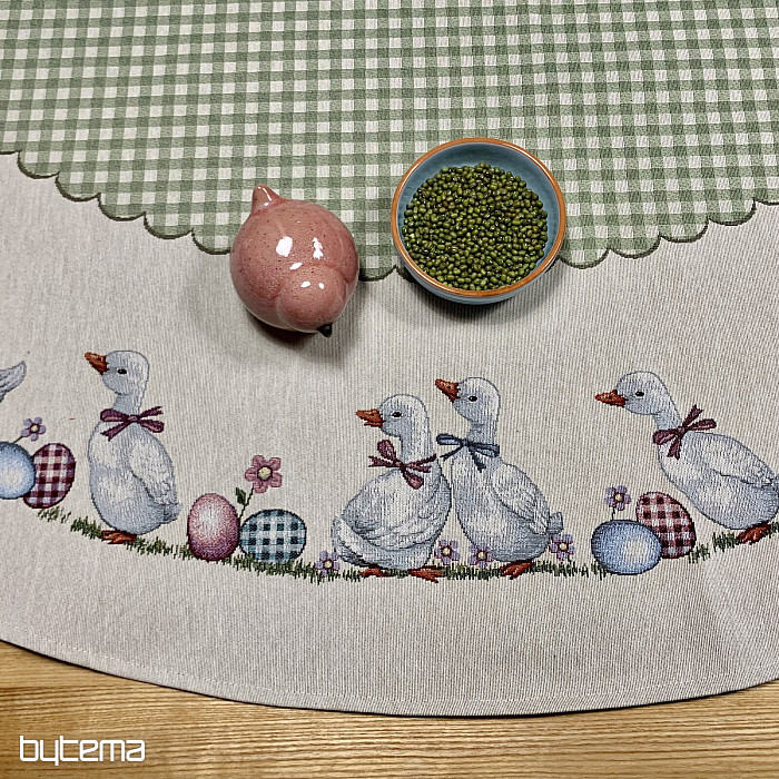 Easter tapestry round tablecloth with green check and geese. A beautiful decoration for your round table.