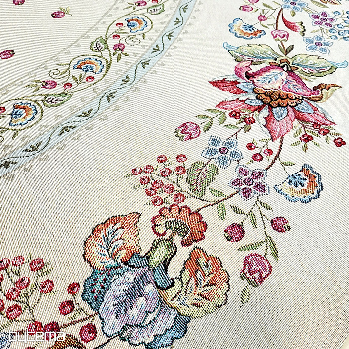 A round tablecloth with painted flowers. Beauty and delicacy in every detail.