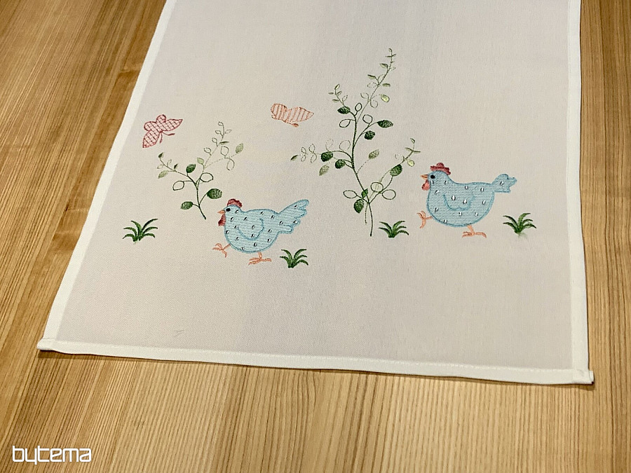 Transforming the interior into a fresh outfit is easy. Amazing possibilities are offered by these beautiful embroidered tableclothswith colorful chickens.