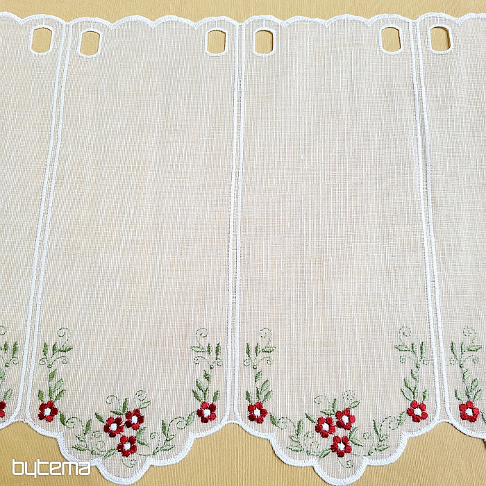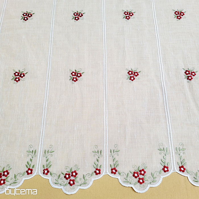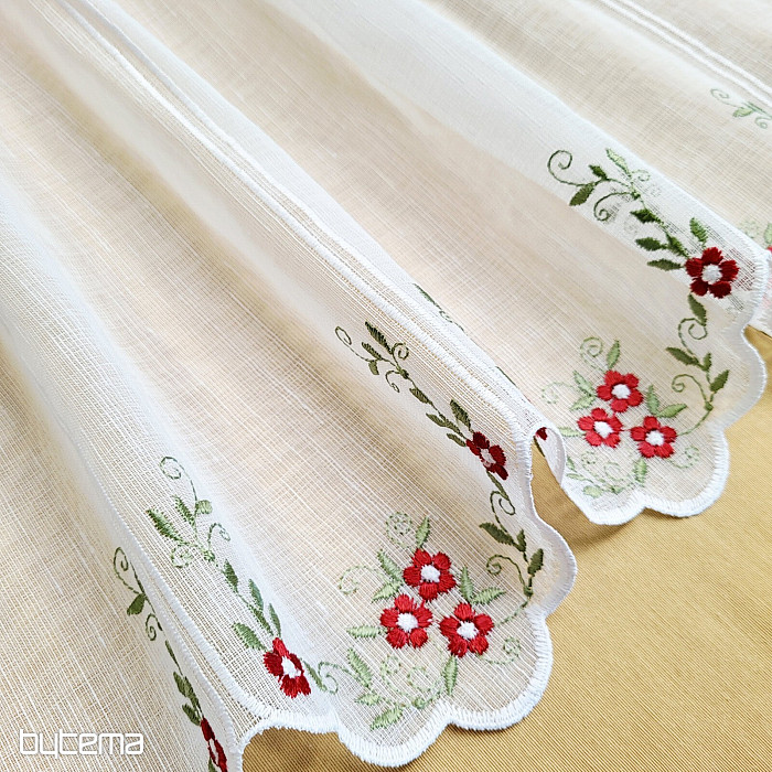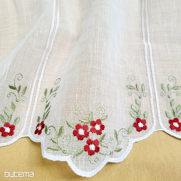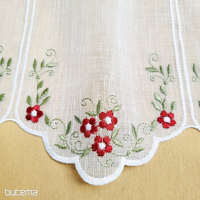 We offer the curtain in three height sizes. At a height of 60cm and 90cm, the curtain has an embroidered flower in the middle of the panel.