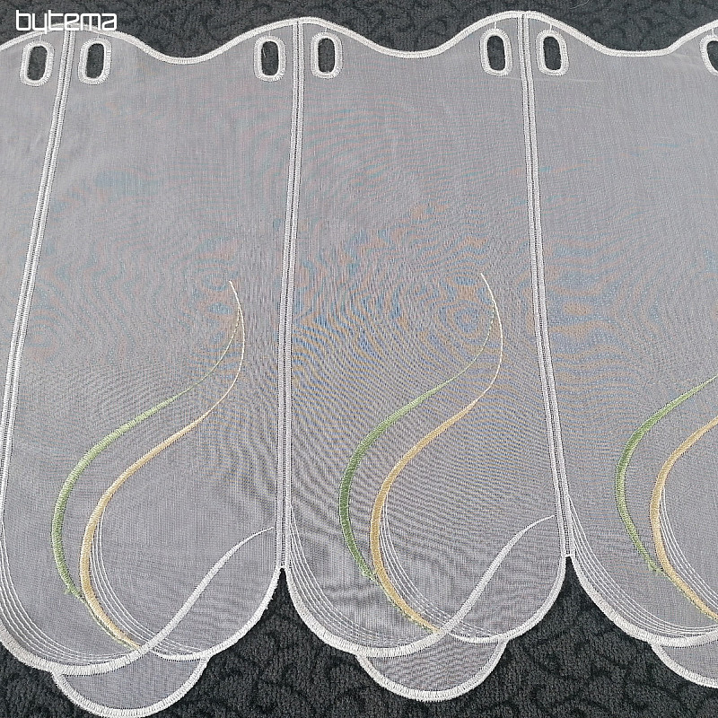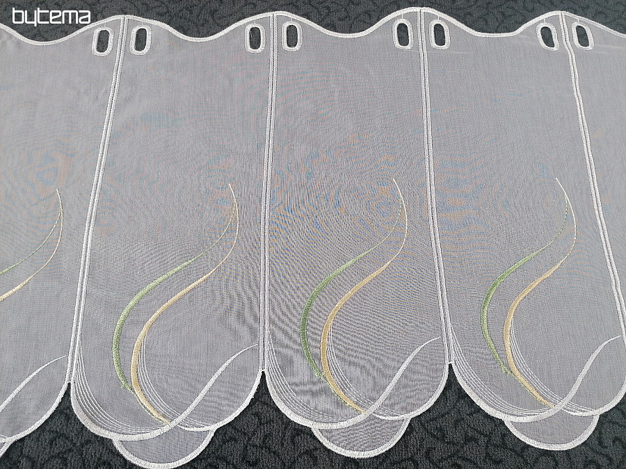 A beautiful fashionable stained glass curtain with orange embroidery will be a perfect addition to your kitchen.