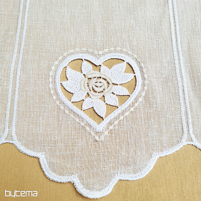 The 70 cm high curtain has a small heart embroidered in the middle.