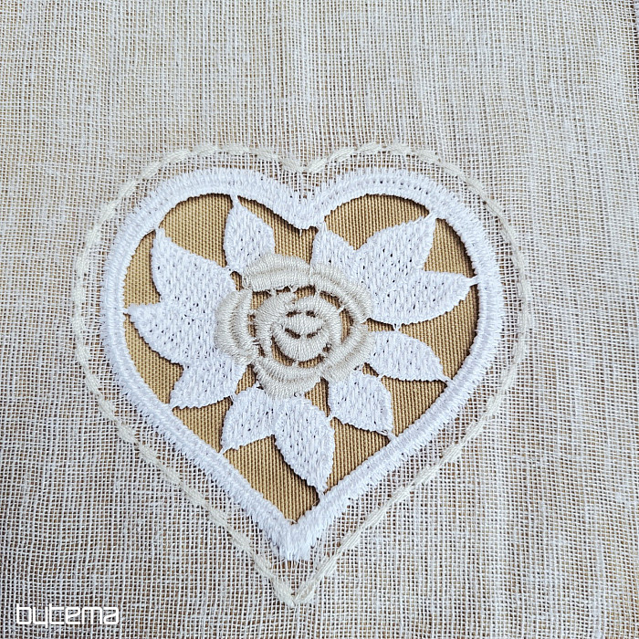 Beautiful vintage curtain with a carved beige and white heart. The curtain looks very soft and pleasant, suitable for wooden windows or small windows.